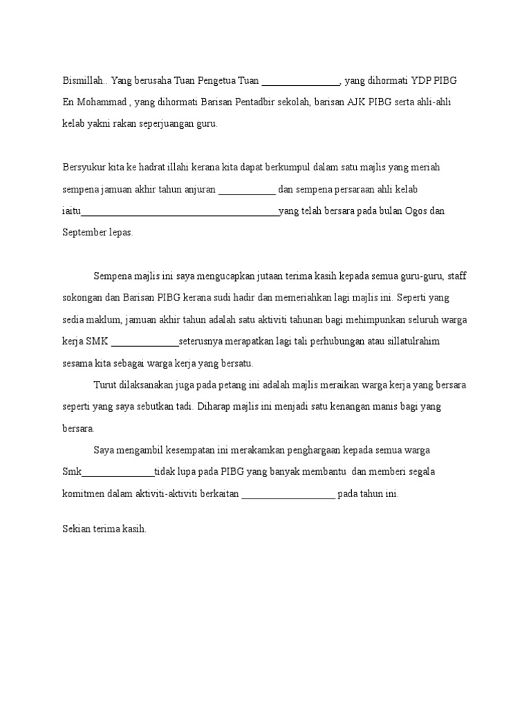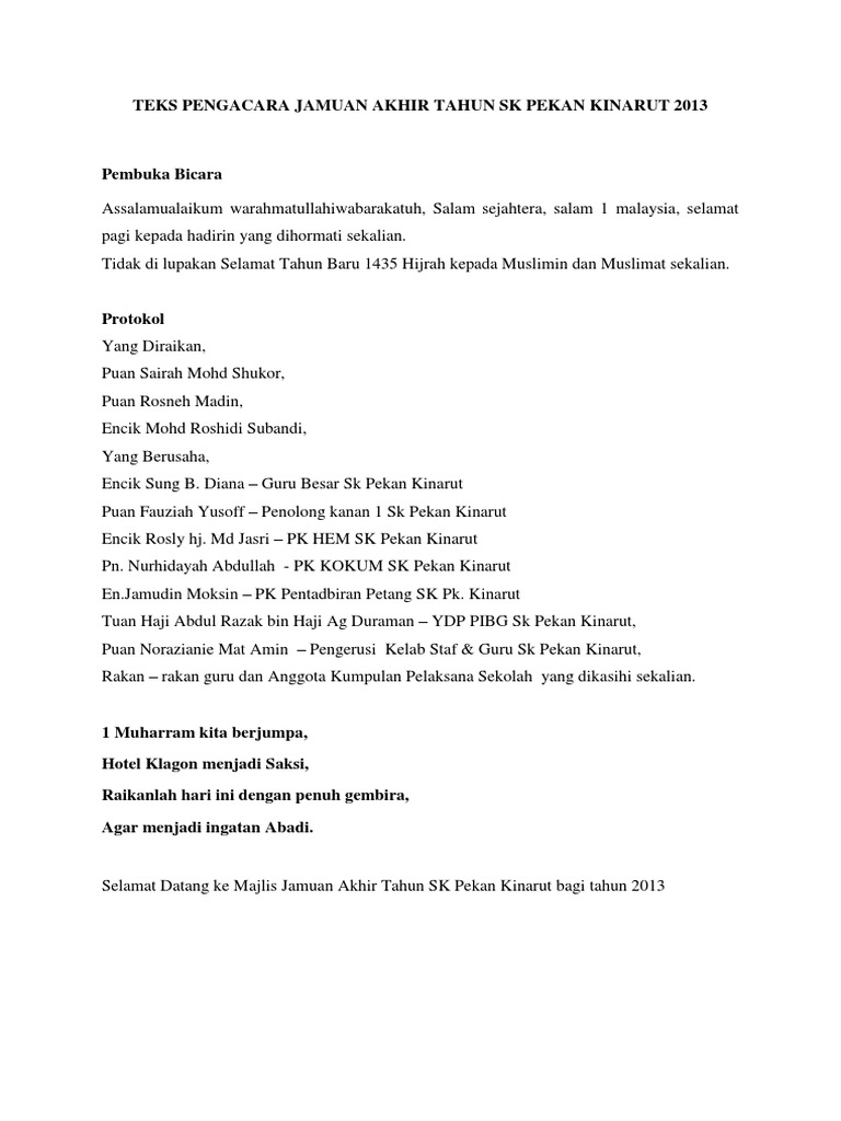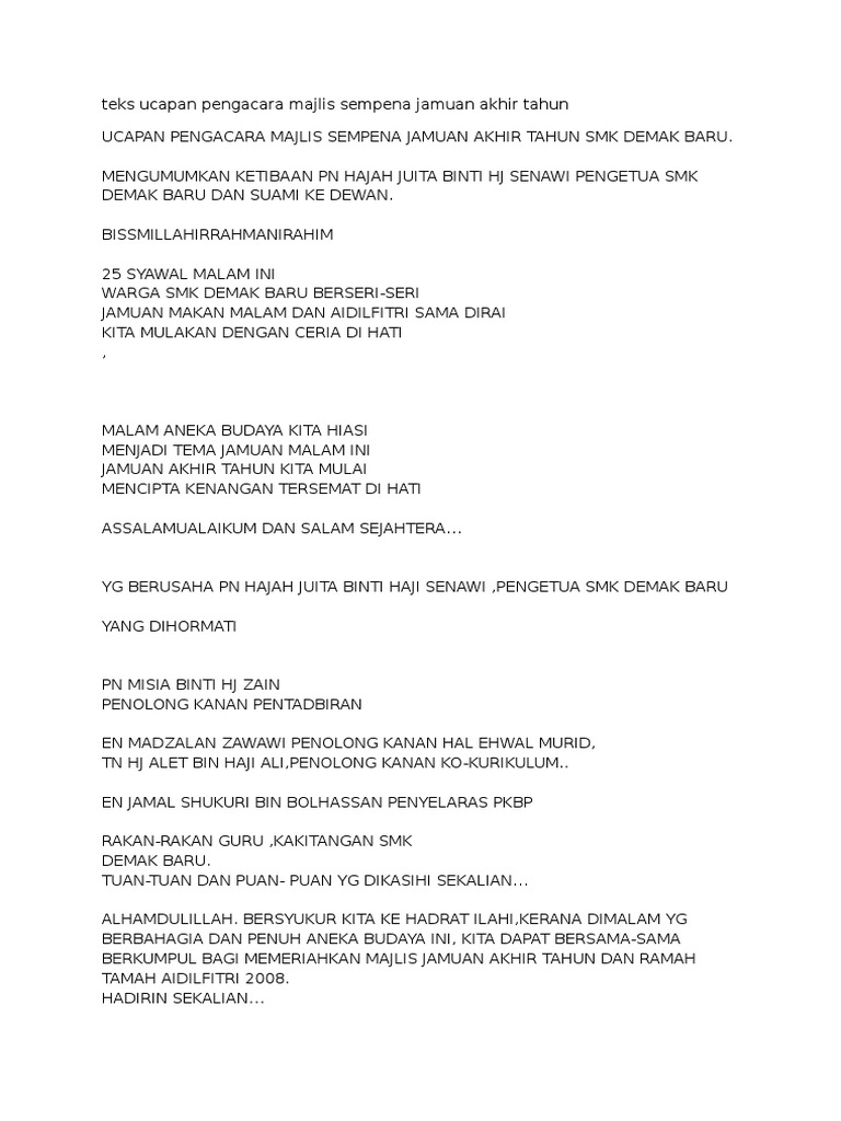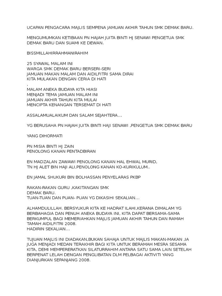 Teks Ucapan Pengacara Majlis Sempena Jamuan Akhir Tahun Pdf